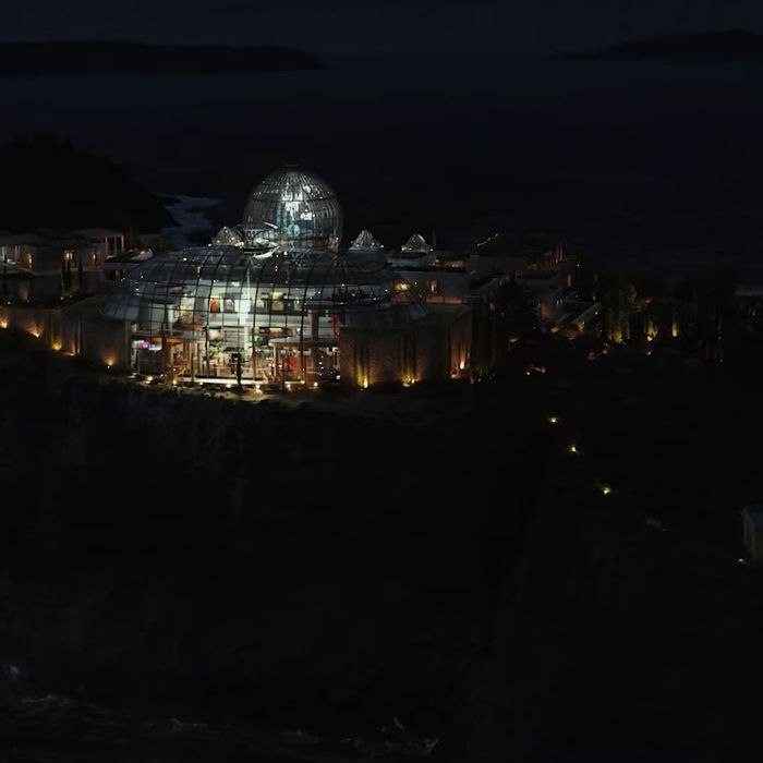 The VFX team created the film ’s striking primary setting, including large CG buildings, architectural structures, and expansive environments. Drawing inspiration from real-world glass landmarks, the team designed and built the iconic Glass Onion—a fully glass, 50-foot-tall dome structure—along with the surrounding villa and Greek island. Because the villa and island were filmed in different locations, both were recreated entirely in CG, including a 360-degree island backdrop and detailed environmental elements such as vegetation, lighting, pathways, and architectural features.